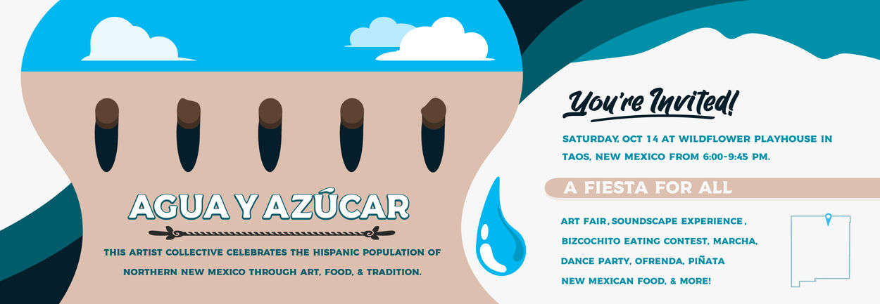Flyer, invitation and t-shirt design for Agua y Azucar, art collective.